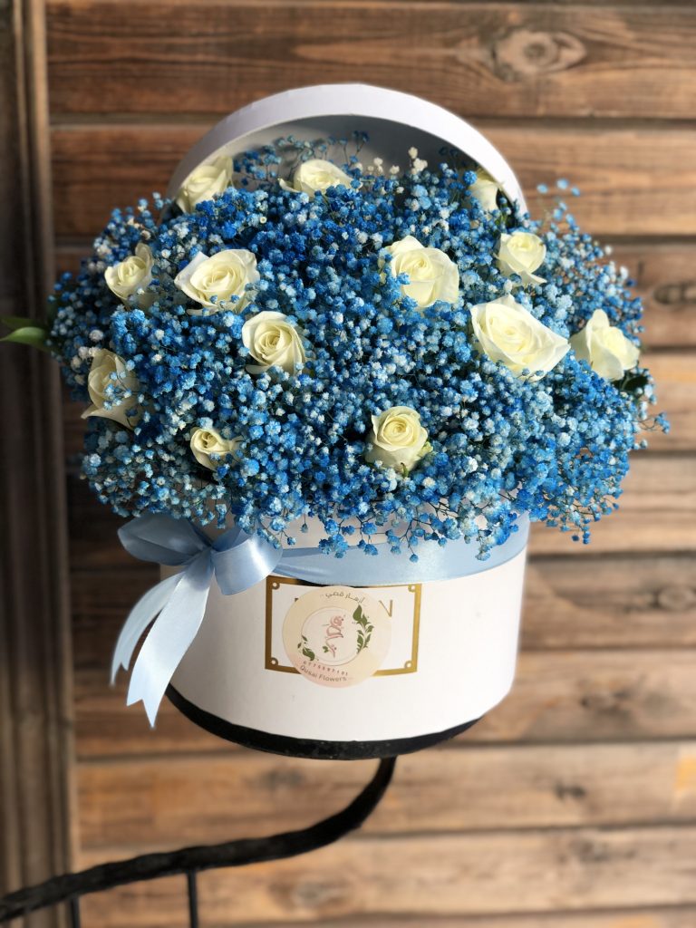 .سلة زهور انيقه .زهرة الجبسوفيليا .جوري احمر عدد العروق (70-80)